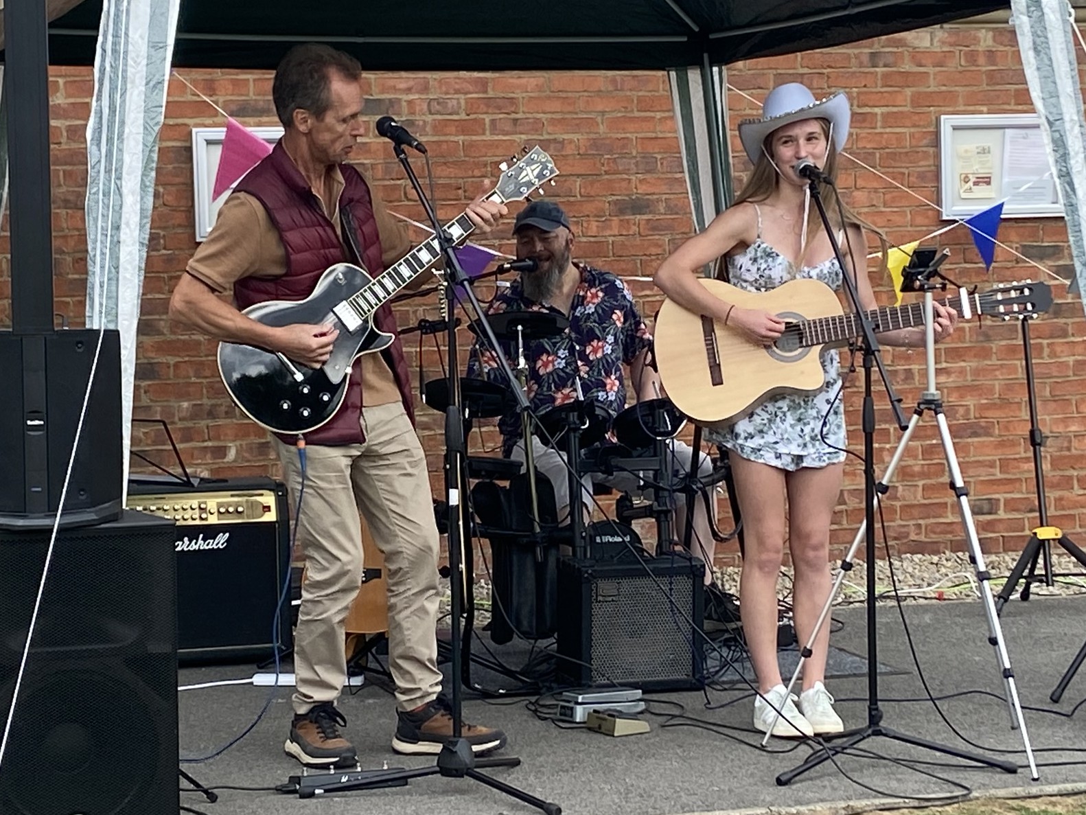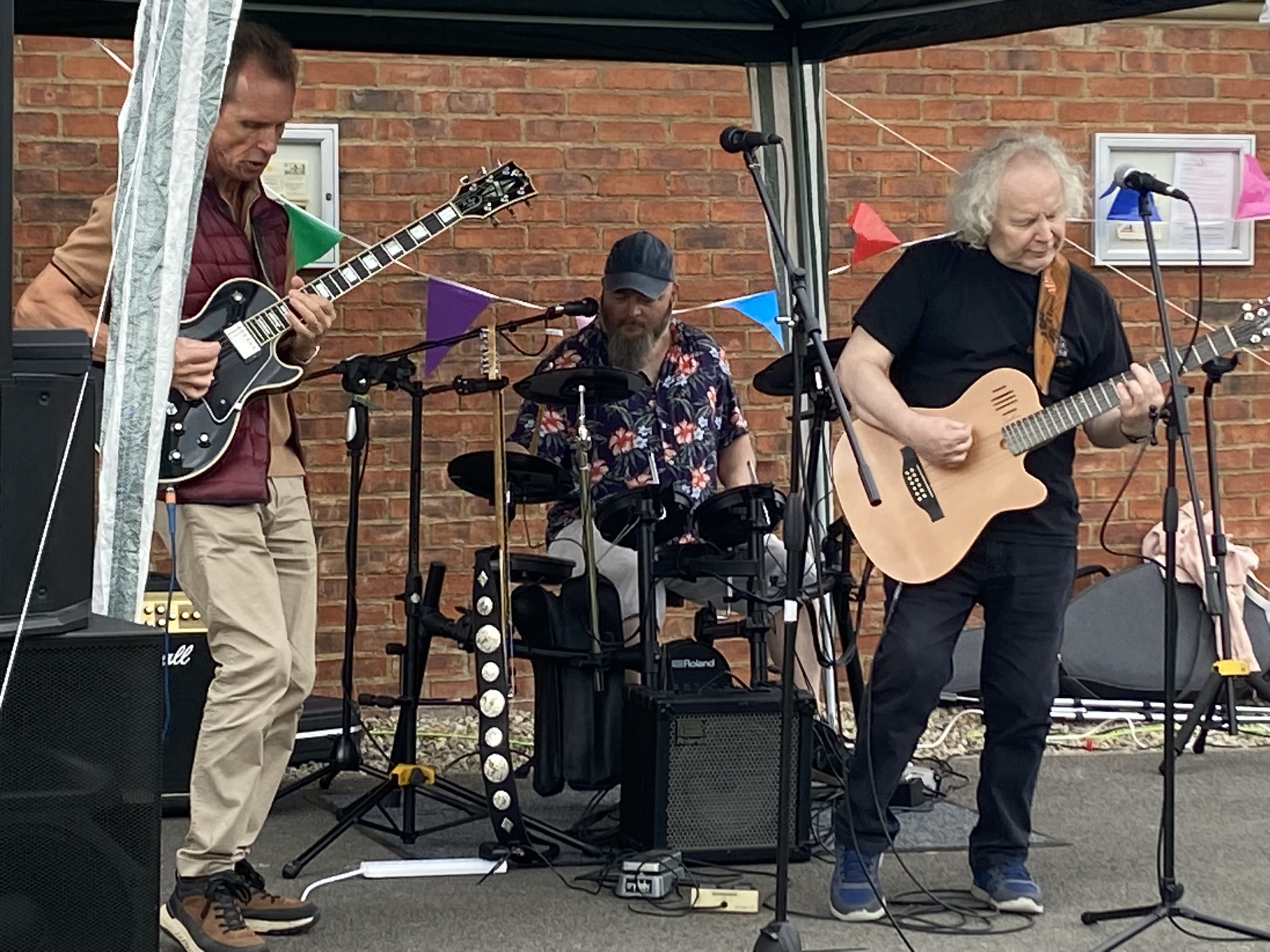 Music was provided by Mat, Jaime and friends aka RoughCut UK who are regulars and organisers of the Open Mic nights at the Black Bull in Ripon. Their set included classics such as Rip Tide, A Horse With No Name and many others. Several local residents enjoyed a dance!